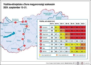 A főigazgató úgy folytatta: a Dunán várhatóan másodpercenkénti 10 ezer köbméteres tetőzéssel fog belépni az árhullám az országba. A szigetközi szakaszon rekordközeli vízszintek várhatók, de ez szerencsére nem érint lakott területeket - ismertette, kiemelve: az árvízi töltések biztonságának garantálása állami feladat. Láng István tájékoztatása szerint a Duna szerdán a Szigetközben Nagybajcson tetőzik, csütörtökön és pénteken Komárom-Esztergom térségében, szombaton és vasárnap pedig Budapesten. A vízszint várhatóan 30-40 centiméterrel a 2013-as szint alatt marad, de a rakpartokat valószínűleg sokáig lezárva fogják tartani - fűzte hozzá.