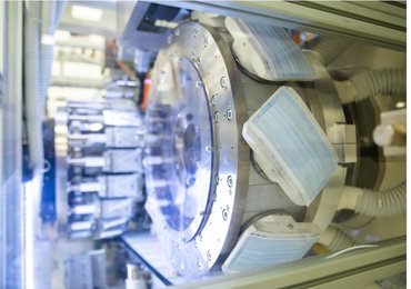 A Vajda-Papír Kft. új, nagyteljesítményű maszkgyártó gépe a cég dunaföldvári üzemében 2021. február 17-én Dunaföldváron. Magyarország önellátóvá vált a vírus ellen védelmet adó maszkokból: a Vajda Papír üzembe állította azokat a modern gépsorokat, amelyekkel napi 1 millió orvosi eszköz minőségű maszk készül. Az Egészségipari Támogatási Program keretein belül megvalósult 1,4 milliárd forintos beruházáshoz a kormány 1,1 milliárd forinttal járult hozzá.