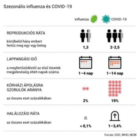 Ami a szezonális influenzát illeti – túl azon, hogy az influenzavírusok már ismerősek az emberi immunrendszer számára –, ha pusztán a kórokozó számokban kifejezhető tulajdonságait nézzük, akkor is kevésbé tűnik veszélyesnek, mint a COVID-19-et kiváltó SARS-CoV-2 vírus, amely fertőzőbb, halálosabb, és nagyobb eséllyel tarolja le az egészségügyi rendszereket.