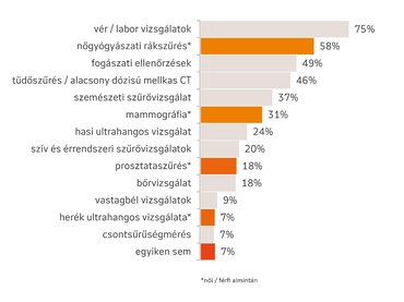 A szűrővizsgálatok fontosságát továbbra sem becsüljük meg eléggé, bár pozitív trendek is körvonalazódnak. Saját bevallása szerint az emberek 30 százaléka jár rendszeresen szűrésre az orvosok ajánlásait betartva, míg további 30 százalék akkor vesz részt vizsgálatokon, ha éppen eszükbe jut, vagy ha emlékeztetik rá őket. Csak panaszok és tünetek megjelenése után vesz részt szűréseken a válaszadók 29 százaléka, és minden tizedik válaszadó utasítja el teljes mértékben ezt a prevenciós lehetőséget.