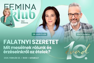 Dr. Lukács Liza pszichológiai, Rákóczi Ferenc pedig gasztronómiai szemszögből közelíti meg az evés mögött húzódó érzelmeket, szokásokat és családi mintákat. Lehet-e a főzés a szeretet kifejezésének egyik formája – egyfajta szeretetnyelv, amelyen keresztül gondoskodunk, bocsánatot kérünk, vagy éppen kapcsolódunk egymáshoz? Ezeket a témákat is megbeszéli Szily Nóra vendégeivel a február 23-ai Femina klubbon.