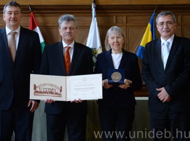 Dame Frances Mary Ashcroft a Debrecen Díj a Molekuláris Orvostudományért kitüntetést március 28-án, kedden vette át az Aulában, ezt követően tudományos eredményeiről tartott előadást.